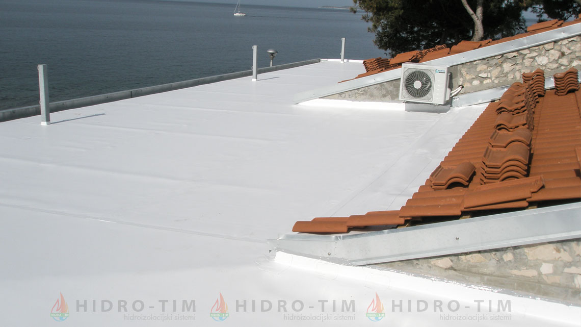 Ein Flachdach Abdichtung auf dem Gebäude Borik, mediterrane Bar in Mali Losinj mit AKWALAN TPO Dachmembran.