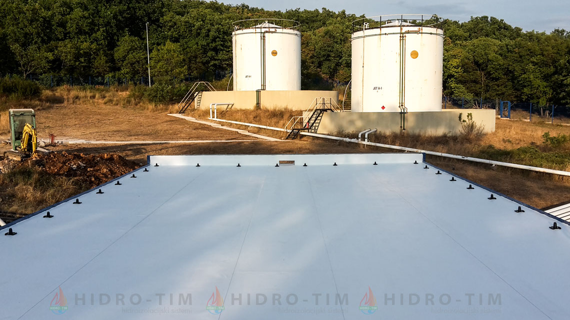 Flachdachabdichtung auf dem Pumpstationen am Flughafen Omisalj, mit Akwalan TPO Dachmembran